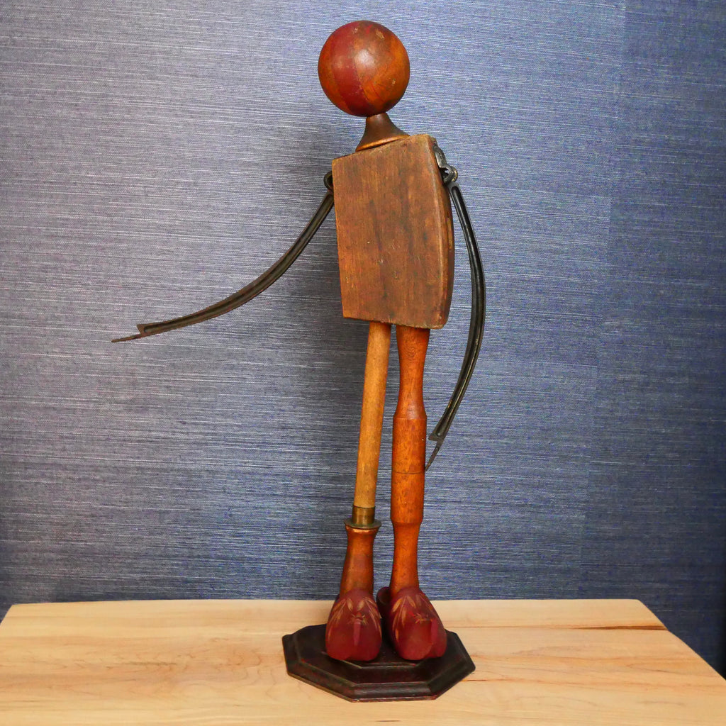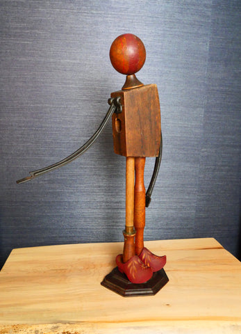 Justin brings his People to life using various bits and bobs from his collection. Among other things, Blake Jr. wears hand-carved souvenir shoes, has an antique mallet for a body and old cast iron arms.