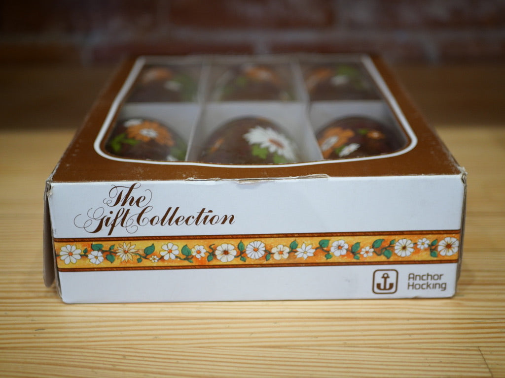 Set of 6 Vintage Fern & Flower Glasses by Anchor Hocking.